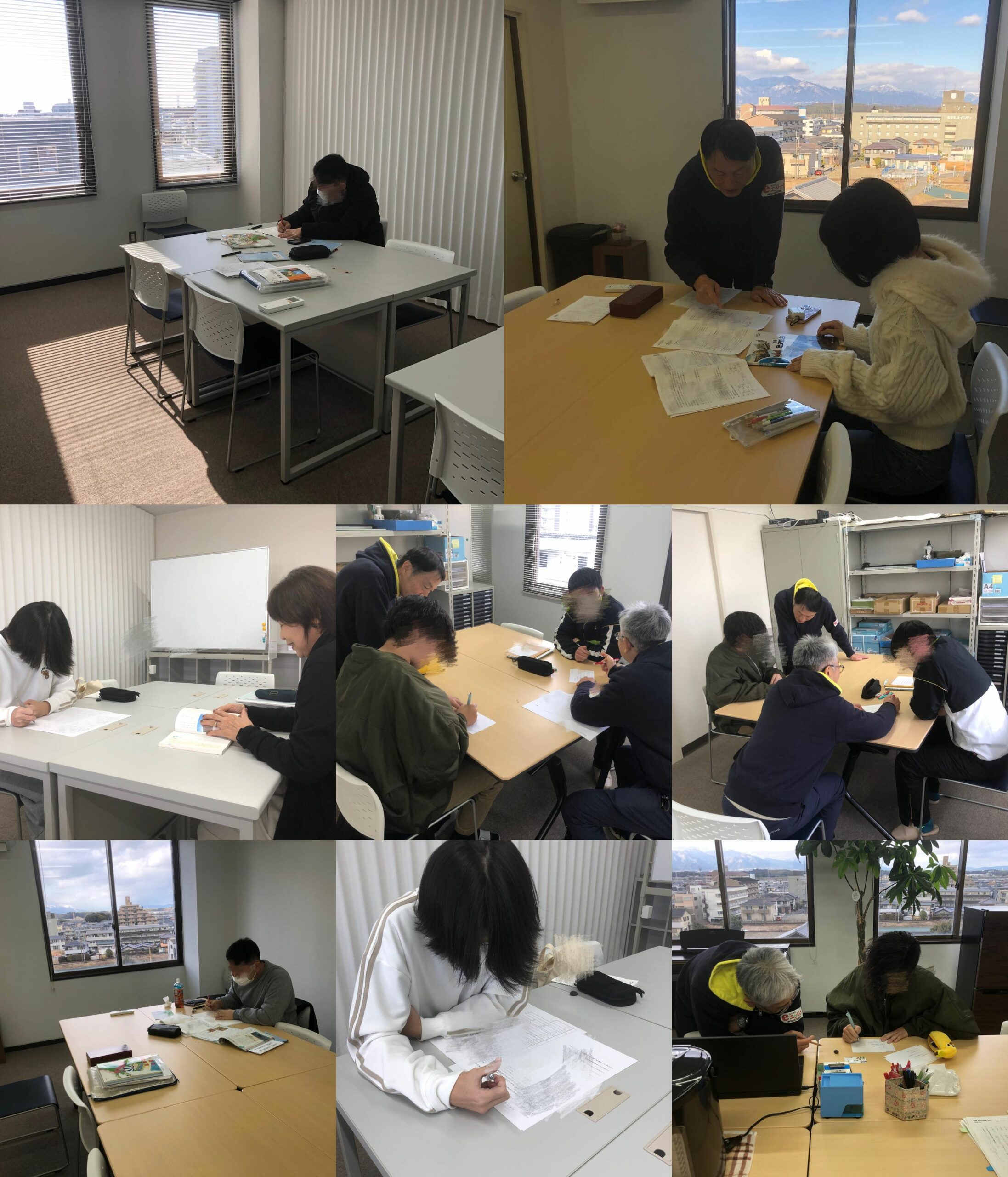 同じ時間帯に、自主学習する生徒や分からないところを教えてもらいにくる生徒などがいて、色々な部屋に分かれて勉強しました。
